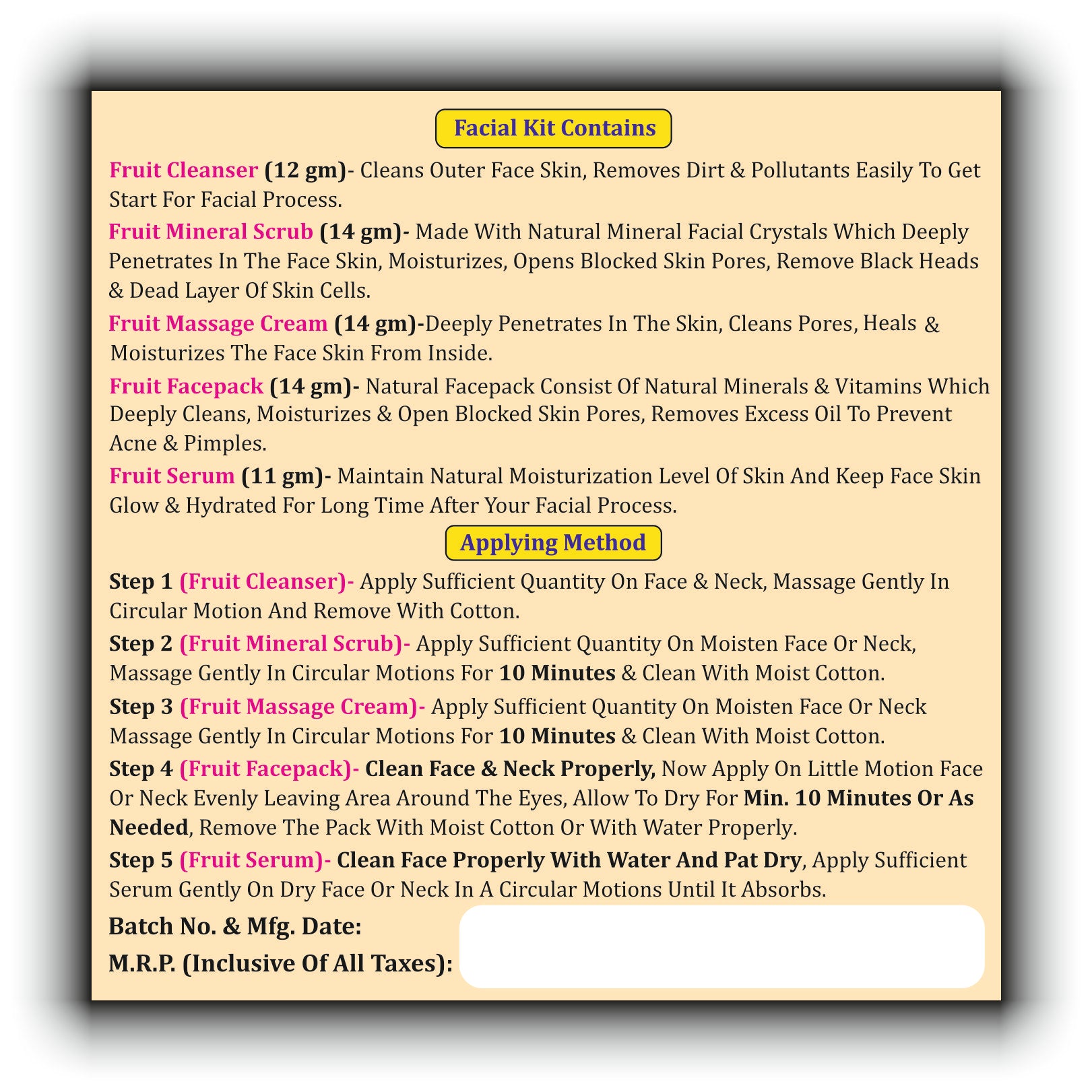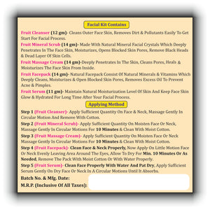 - Perfectly Balanced Moisturizing Fruit Facial Kit With The Qualities Of Herbal, Intense Repair, Providing Best & Deep Moisturization Of Skin.
